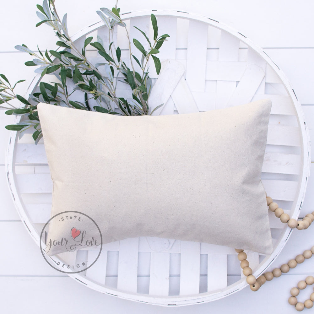This product listing is for a 12x20" - 10 oz. cotton canvas pillow cover with an invisible zipper closure. These pillow cover blanks are perfect for those crafters who love to personalize and make it their own. They can be used for heat transfer vinyl HTV, embroidery, stenciling, painting, and so much more!