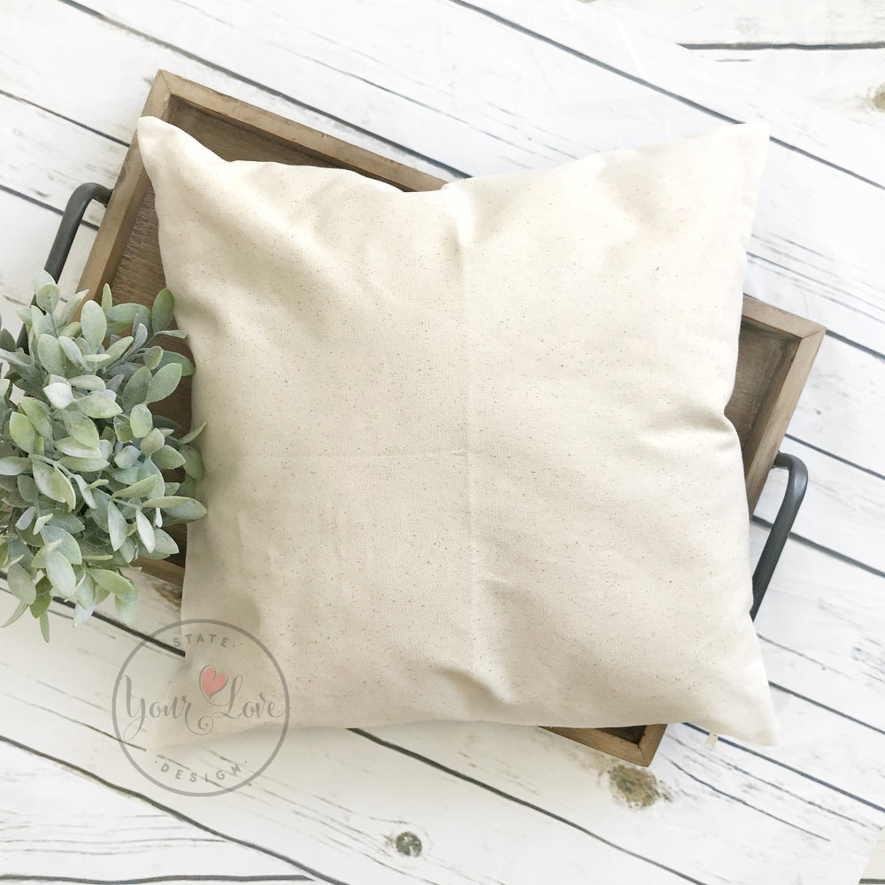 This product listing is for a 24x24" - 10 oz. cotton canvas pillow cover with an invisible zipper closure. These pillow cover blanks are perfect for those crafters who love to personalize and make it their own. They can be used for heat transfer vinyl HTV, embroidery, stenciling, painting, and so much more!